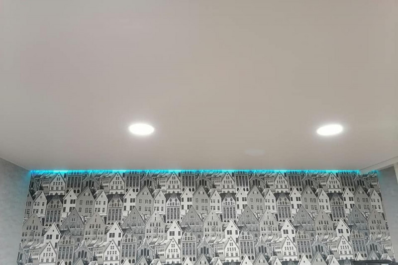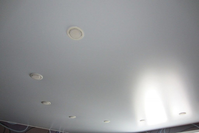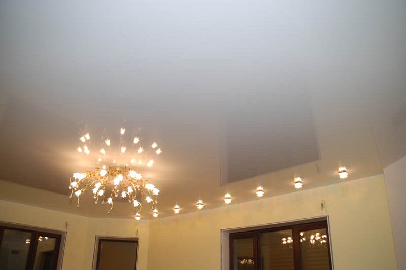 Основное правило – не перегревать натяжной потолок. По этой причине все нагревающиеся элементы ставятся с тем расчетом, чтобы до поверхности жар не доставал. Оптимальными являются светодиоды.