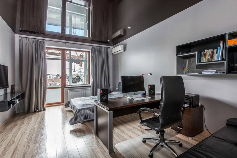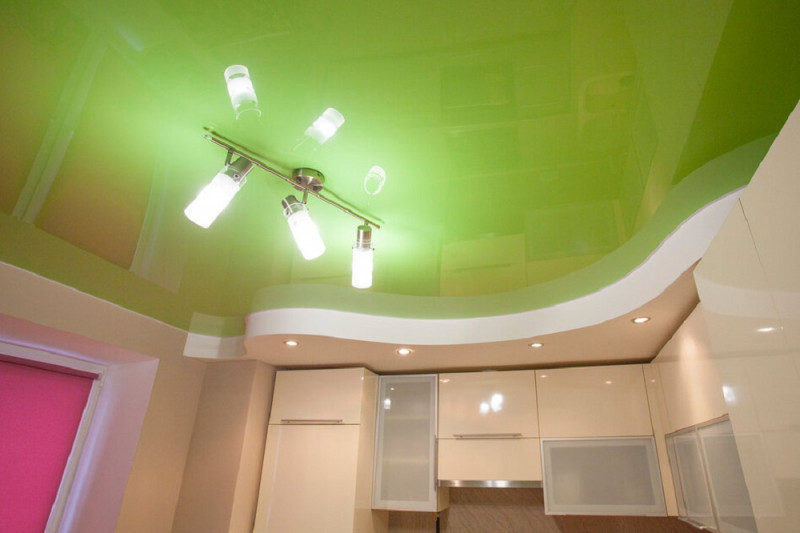 Такой потолок обладает всеми свойствами натяжного покрытия. Если он изготовлен из пленки ПВХ, об отделке и мебели вы можете не волноваться.