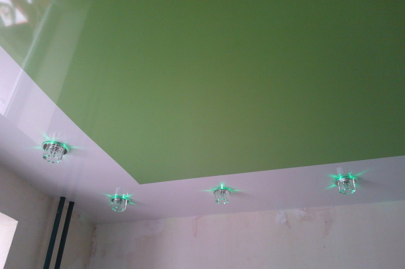 Основное правило – не перегревать натяжной потолок. По этой причине все нагревающиеся элементы ставятся с тем расчетом, чтобы до поверхности жар не доставал. Оптимальными являются светодиоды.