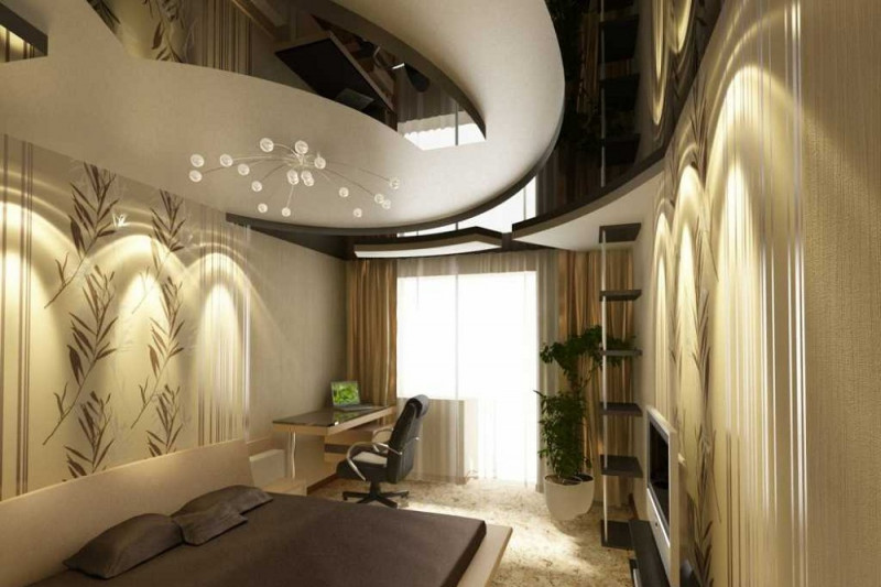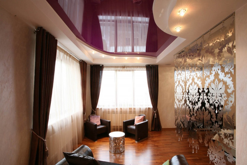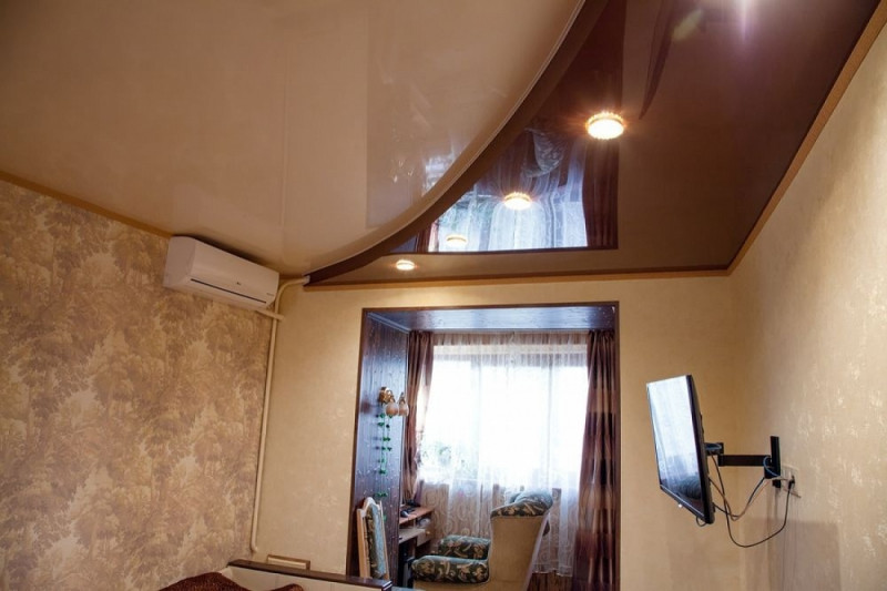 Особенно это актуально для квартир-студий, но и в одной комнате многоуровневый потолок будет смотреться красиво и хорошо, если правильно выбрать цвет и фактуру материала.