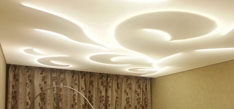 Важно соблюдать правило удаленности ламп от поверхности потолка, так как они будут ее нагревать. Особенно это критично для ПВХ. Для декорирования двухуровневых потолков используют только светодиодные ленты.