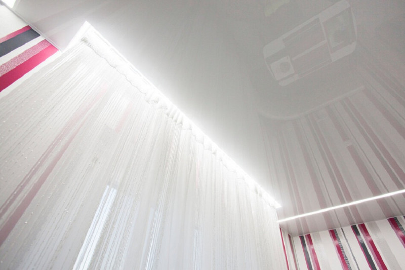 В этом случае световые линии особенно удобны, так как помогают скрыть стыки между двумя частями полотен.