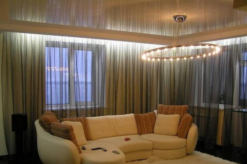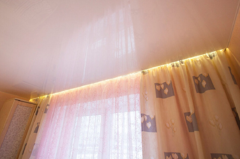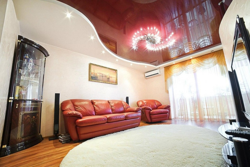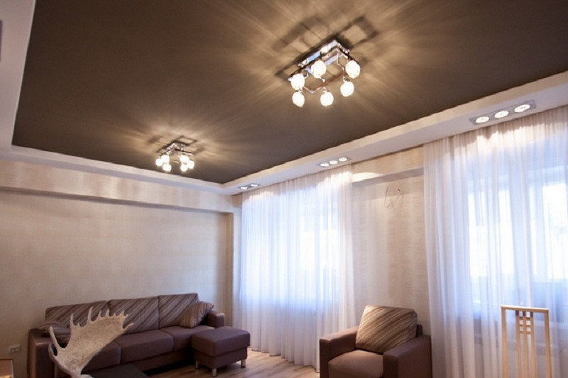 Такой потолок обладает всеми свойствами натяжного покрытия. Если он изготовлен из пленки ПВХ, об отделке и мебели вы можете не волноваться.