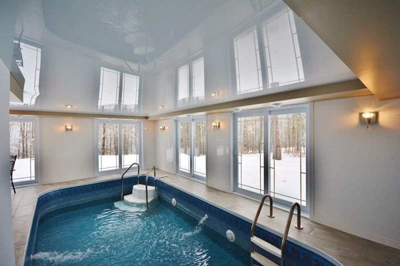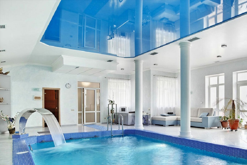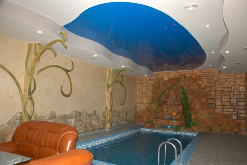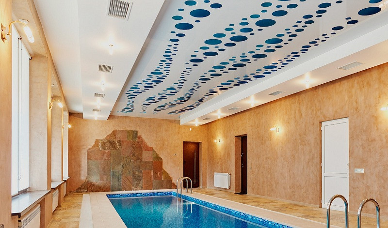 Такой потолок обладает всеми свойствами натяжного покрытия. Если он изготовлен из пленки ПВХ, об отделке и мебели вы можете не волноваться.
