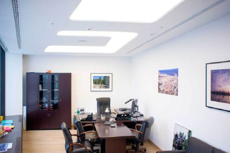 В этом случае световые линии особенно удобны, так как помогают скрыть стыки между двумя частями полотен.