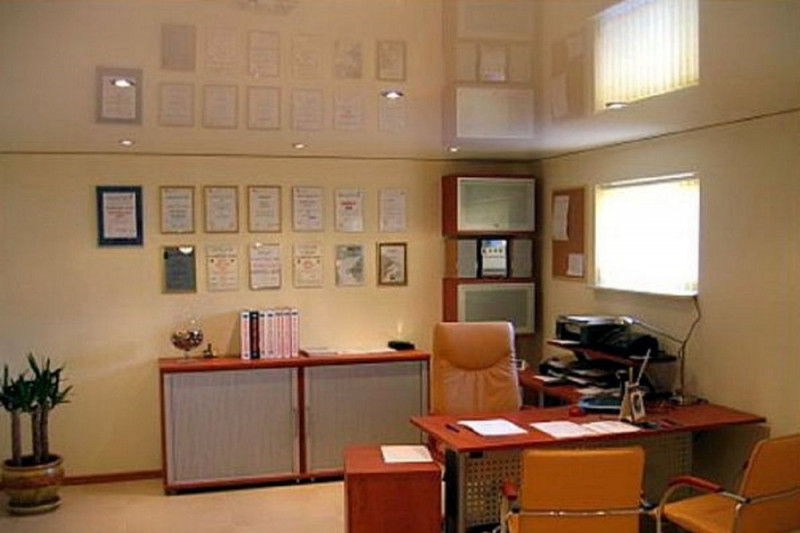 Такой потолок обладает всеми свойствами натяжного покрытия. Если он изготовлен из пленки ПВХ, об отделке и мебели вы можете не волноваться.