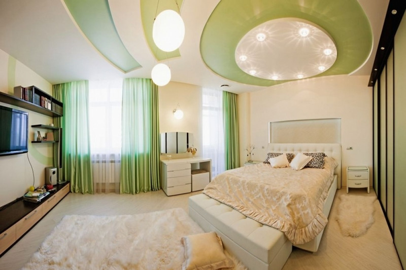 Фото работ по потолкам в спальню
