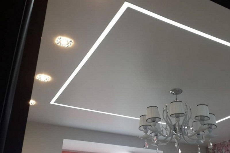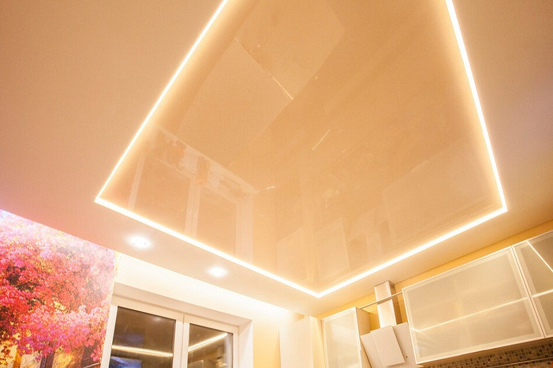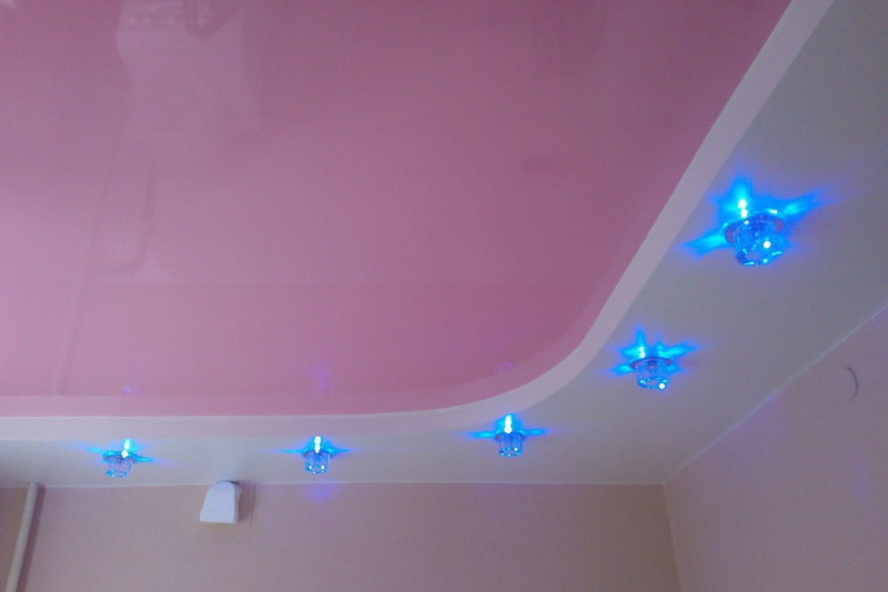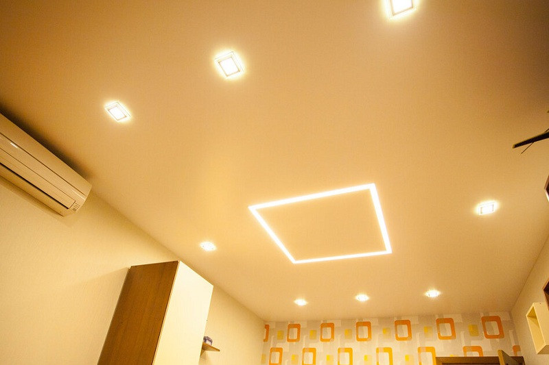 Основное правило – не перегревать натяжной потолок. По этой причине все нагревающиеся элементы ставятся с тем расчетом, чтобы до поверхности жар не доставал. Оптимальными являются светодиоды.