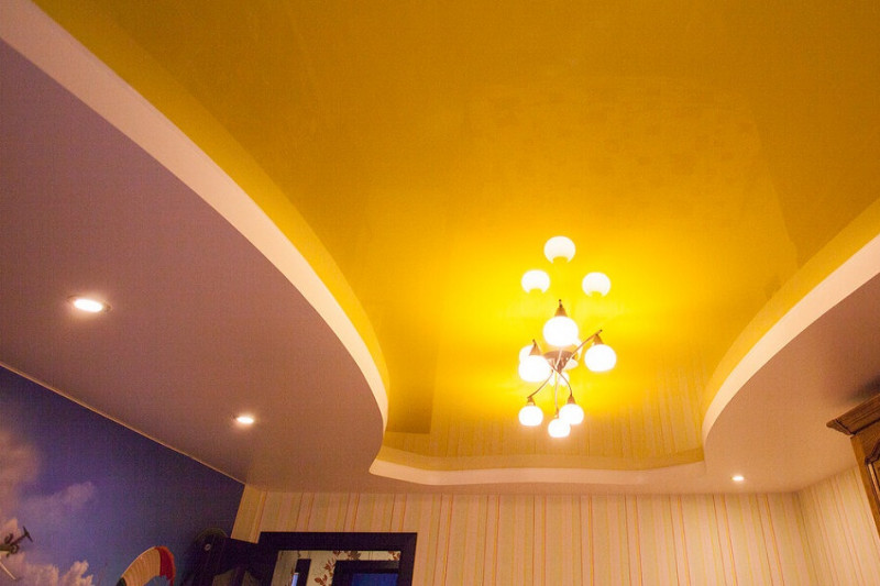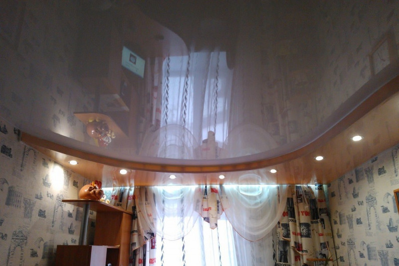 Такой потолок обладает всеми свойствами натяжного покрытия. Если он изготовлен из пленки ПВХ, об отделке и мебели вы можете не волноваться.