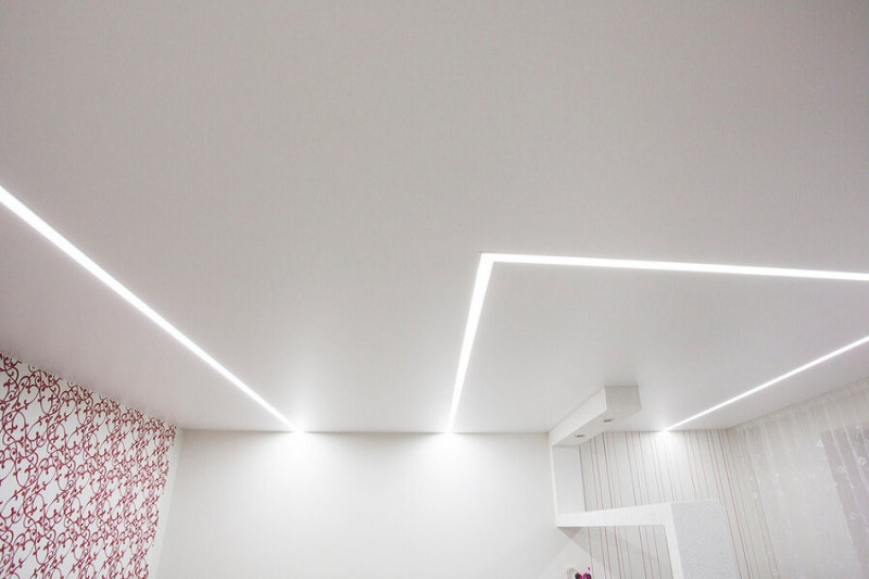 В этом случае световые линии особенно удобны, так как помогают скрыть стыки между двумя частями полотен.