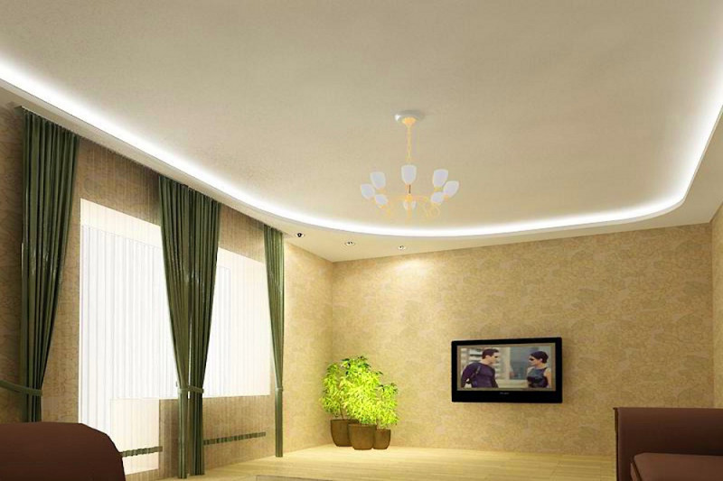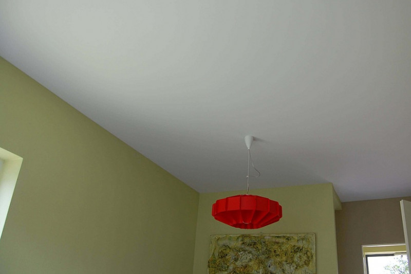 Такой потолок обладает всеми свойствами натяжного покрытия. Если он изготовлен из пленки ПВХ, об отделке и мебели вы можете не волноваться.