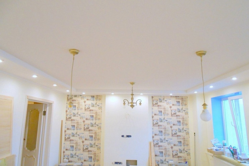 Такой потолок обладает всеми свойствами натяжного покрытия. Если он изготовлен из пленки ПВХ, об отделке и мебели вы можете не волноваться.