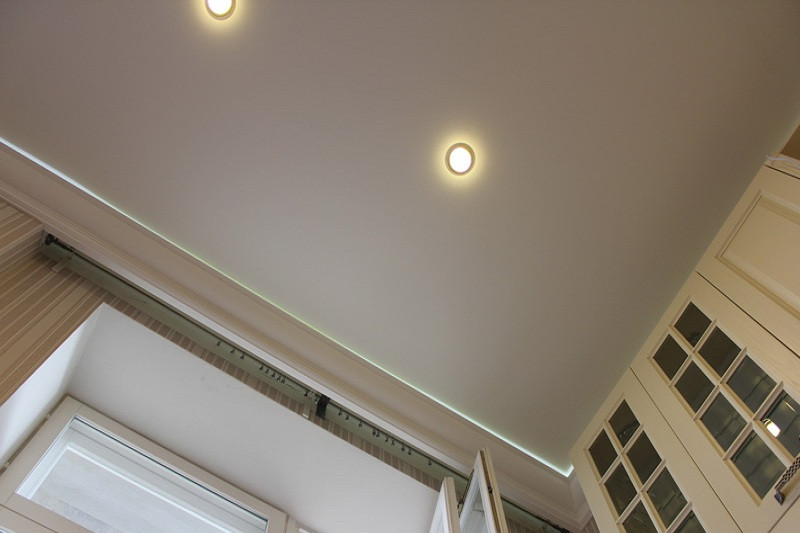 Основное правило – не перегревать натяжной потолок. По этой причине все нагревающиеся элементы ставятся с тем расчетом, чтобы до поверхности жар не доставал. Оптимальными являются светодиоды.